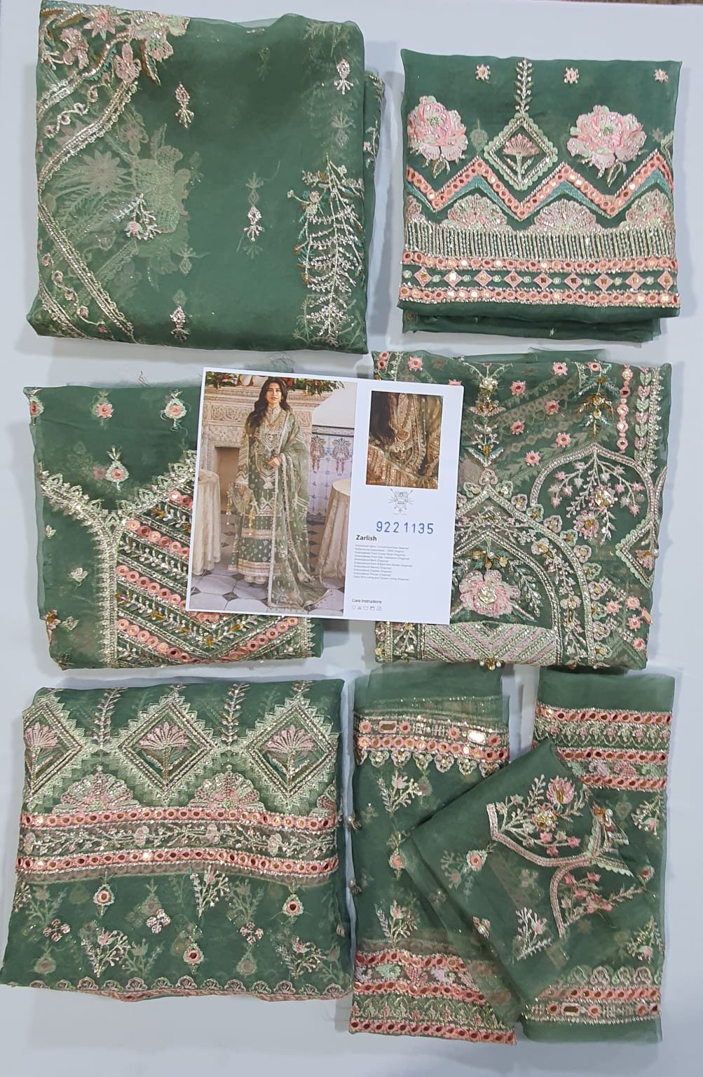 Mohsin Naveed Ranjha zarlish Collection Embroidered Replica suit’s complete embroidery work is shown in the video. It is beautifully crafted king master copy with vibrant colors and quality wise no compromises were made as always.
